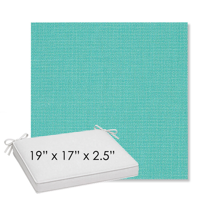 19" x 17" x 2.5" Thick outdoor dining chair seat cushion designed for a simple, ready-to-order fit. Features a boxed construction with piping, fabric ties, and zipper opening. Made in 700+ Sunbrella® fabrics for long-lasting outdoor performance.