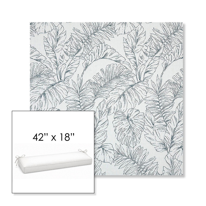 42" outdoor bench cushion designed for a simple, ready-to-order fit. Features a boxed construction with piping, fabric ties, and zipper opening. Made in 700+ Sunbrella® fabrics for long-lasting outdoor performance.