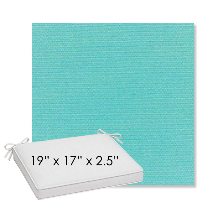 19" x 17" x 2.5" Thick outdoor dining chair seat cushion designed for a simple, ready-to-order fit. Features a boxed construction with piping, fabric ties, and zipper opening. Made in 700+ Sunbrella® fabrics for long-lasting outdoor performance.