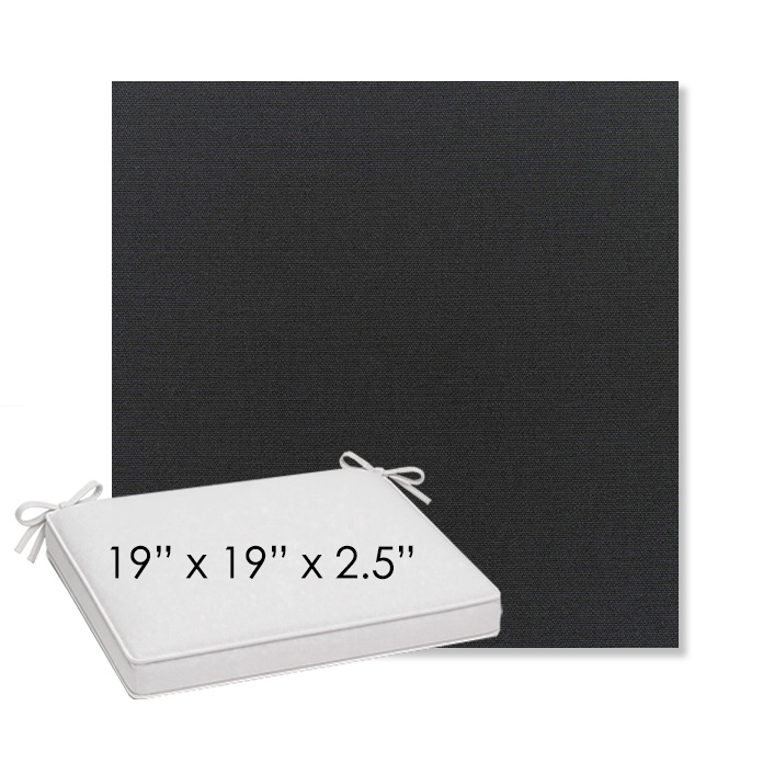 19" x 19" x 2.5" Thick outdoor dining chair seat cushion designed for a simple, ready-to-order fit. Features a boxed construction with piping, fabric ties, and zipper opening. Made in 700+ Sunbrella® fabrics for long-lasting outdoor performance.