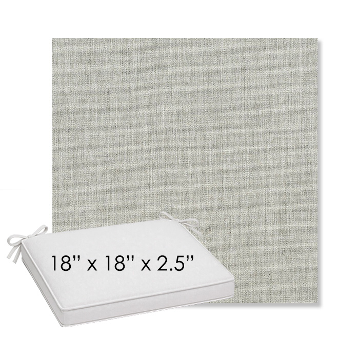 18" x 18" x 2.5" Thick outdoor dining chair seat cushion designed for a simple, ready-to-order fit. Features a boxed construction with piping, fabric ties, and zipper opening. Made in 700+ Sunbrella® fabrics for long-lasting outdoor performance.