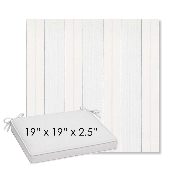 19" x 19" x 2.5" Thick outdoor dining chair seat cushion designed for a simple, ready-to-order fit. Features a boxed construction with piping, fabric ties, and zipper opening. Made in 700+ Sunbrella® fabrics for long-lasting outdoor performance.