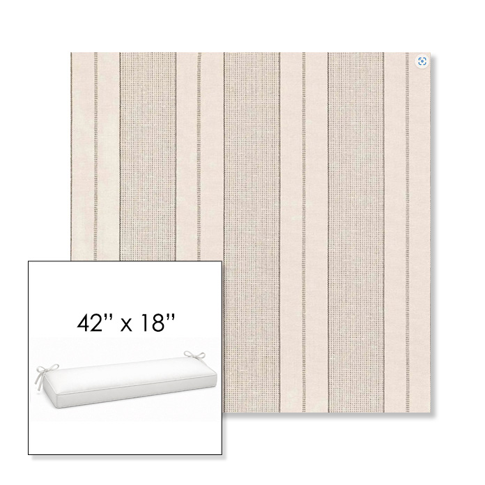 42" outdoor bench cushion designed for a simple, ready-to-order fit. Features a boxed construction with piping, fabric ties, and zipper opening. Made in 700+ Sunbrella® fabrics for long-lasting outdoor performance.