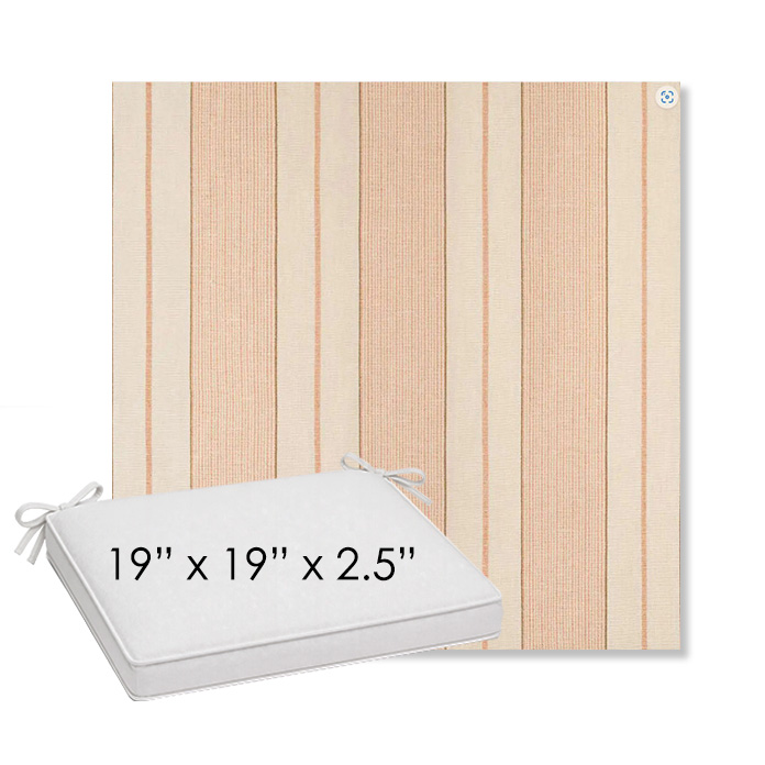 19" x 19" x 2.5" Thick outdoor dining chair seat cushion designed for a simple, ready-to-order fit. Features a boxed construction with piping, fabric ties, and zipper opening. Made in 700+ Sunbrella® fabrics for long-lasting outdoor performance.