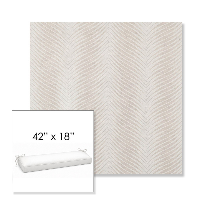42" outdoor bench cushion designed for a simple, ready-to-order fit. Features a boxed construction with piping, fabric ties, and zipper opening. Made in 700+ Sunbrella® fabrics for long-lasting outdoor performance.