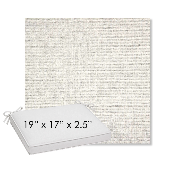 19" x 17" x 2.5" Thick outdoor dining chair seat cushion designed for a simple, ready-to-order fit. Features a boxed construction with piping, fabric ties, and zipper opening. Made in 700+ Sunbrella® fabrics for long-lasting outdoor performance.