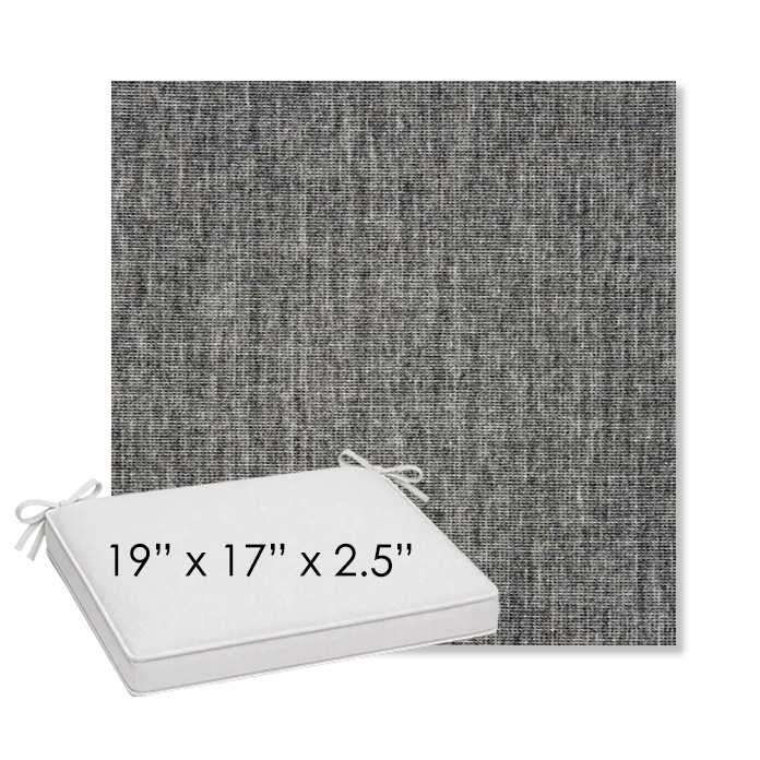 19" x 17" x 2.5" Thick outdoor dining chair seat cushion designed for a simple, ready-to-order fit. Features a boxed construction with piping, fabric ties, and zipper opening. Made in 700+ Sunbrella® fabrics for long-lasting outdoor performance.
