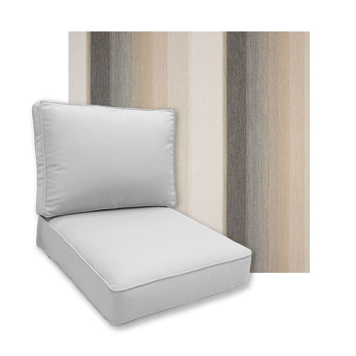Why settle for off the shelf patio cushions when Cascadia Outdoor Cushions can manufacture the exact size you are looking for.The sizes avalable for this replacement cushion range from 24" to 26" Wide in 1/2" increments. This size range works well for most deep seating outdoor patio furniture styles. If you are looking for patio chair replacement cushions that are smaller or larger, no worries, we can mke them. Just send an email inquiry and let us know the size you are looking for. The patio furniture replacement cushions offered on Cascadia Outdoor Cushions are not all that we can make. If you have outdoor furniture from Brown Jordan, Woodard, Winston, OW LEE, Telescope Northcape, Ebel, Lloyd Flanders, Tropitone, Castelle, Bernhardt, Sunset West, Hanamint, Gensun, Meadowcraft, or other fine outdoor furniture brands, let us know. We can order the perfect replacement cushions for any manufacturer.