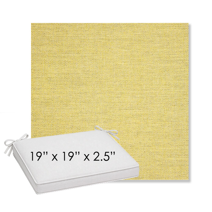 Upgrade your outdoor dining chair seating with our 19" wide x 19" deep x 2.5" thick outdoor dining chair pad or cushion designed for a clean, tailored fit and effortless ordering. Built in a structured boxed style with piping and fabric ties, this cushion delivers both comfort and durability for everyday outdoor living. Whether you're replacing an existing cushion or refreshing your outdoor dining space, this size is ideal for all styles of outdoor patio dining chairs.