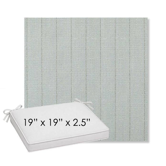 19" x 19" x 2.5" Thick outdoor dining chair seat cushion designed for a simple, ready-to-order fit. Features a boxed construction with piping, fabric ties, and zipper opening. Made in 700+ Sunbrella® fabrics for long-lasting outdoor performance.