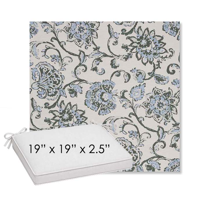Martha Floral Periwinkle | Sunbrella® 19" x 19" Outdoor Dining Cushion