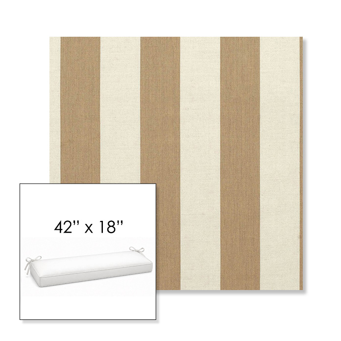 42" outdoor bench cushion designed for a simple, ready-to-order fit. Features a boxed construction with piping, fabric ties, and zipper opening. Made in 700+ Sunbrella® fabrics for long-lasting outdoor performance.