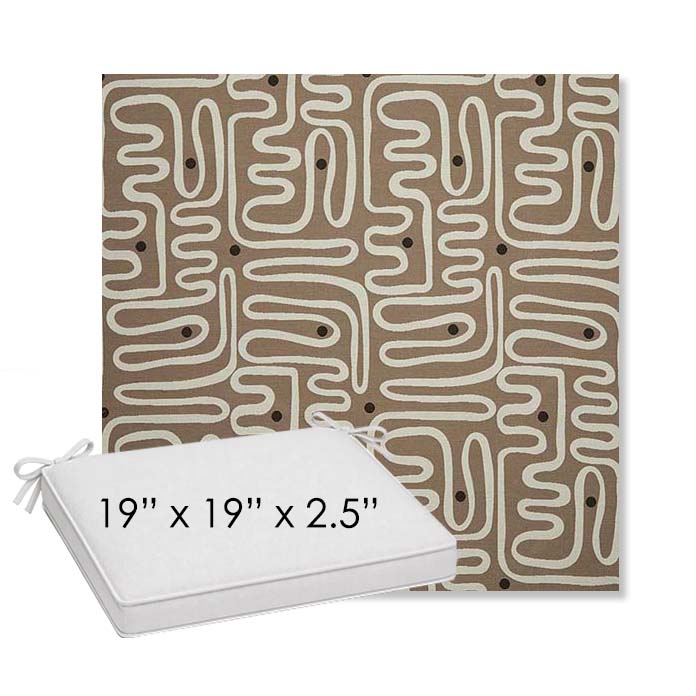 19" x 19" x 2.5" Thick outdoor dining chair seat cushion designed for a simple, ready-to-order fit. Features a boxed construction with piping, fabric ties, and zipper opening. Made in 700+ Sunbrella® fabrics for long-lasting outdoor performance.