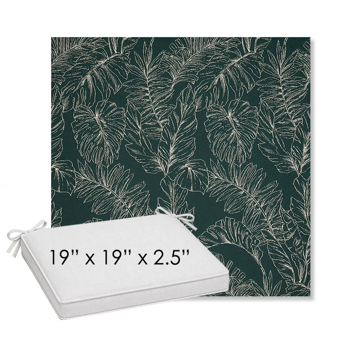Upgrade your outdoor dining chair seating with our 19" wide x 19" deep x 2.5" thick outdoor dining chair pad or cushion designed for a clean, tailored fit and effortless ordering. Built in a structured boxed style with piping and fabric ties, this cushion delivers both comfort and durability for everyday outdoor living. Whether you're replacing an existing cushion or refreshing your outdoor dining space, this size is ideal for all styles of outdoor patio dining chairs.