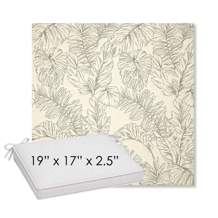 Upgrade your outdoor dining chair seating with our 19" wide x 17" deep x 2.5" thick outdoor dining chair pad or cushion designed for a clean, tailored fit and effortless ordering. Built in a structured boxed style with piping and fabric ties, this cushion delivers both comfort and durability for everyday outdoor living. Whether you're replacing an existing cushion or refreshing your outdoor dining space, this size is ideal for all styles of outdoor patio dining chairs.