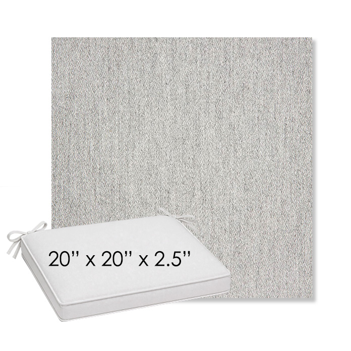 20" x 20" x 2.5" Thick outdoor dining chair seat cushion designed for a simple, ready-to-order fit. Features a boxed construction with piping, fabric ties, and zipper opening. Made in 700+ Sunbrella® fabrics for long-lasting outdoor performance.
