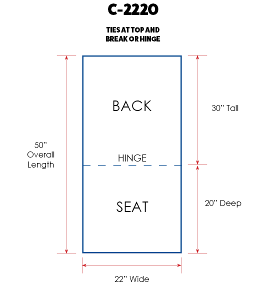 | C-2220 | Universal Recliner Chair Cushion- Ties At Top & Break | 22" Wide x 50" Long - Seat Depth 20" |