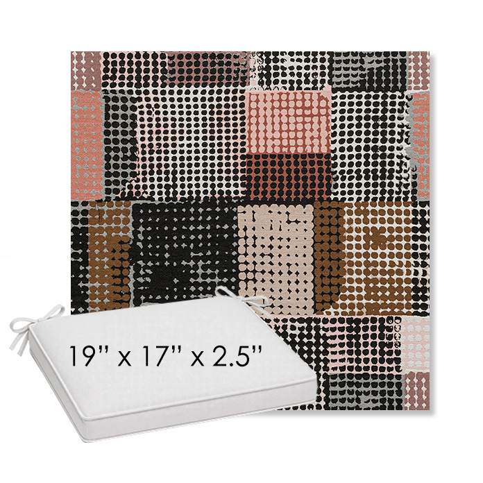 Upgrade your outdoor dining chair seating with our 19" wide x 17" deep x 2.5" thick outdoor dining chair pad or cushion designed for a clean, tailored fit and effortless ordering. Built in a structured boxed style with piping and fabric ties, this cushion delivers both comfort and durability for everyday outdoor living. Whether you're replacing an existing cushion or refreshing your outdoor dining space, this size is ideal for all styles of outdoor patio dining chairs.