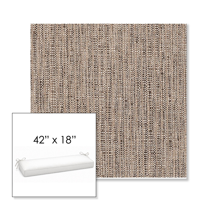42" outdoor bench cushion designed for a simple, ready-to-order fit. Features a boxed construction with piping, fabric ties, and zipper opening. Made in 700+ Sunbrella® fabrics for long-lasting outdoor performance.