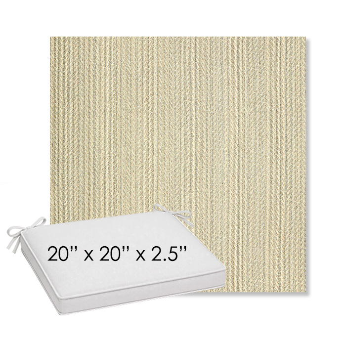 20" x 20" x 2.5" Thick outdoor dining chair seat cushion designed for a simple, ready-to-order fit. Features a boxed construction with piping, fabric ties, and zipper opening. Made in 700+ Sunbrella® fabrics for long-lasting outdoor performance.