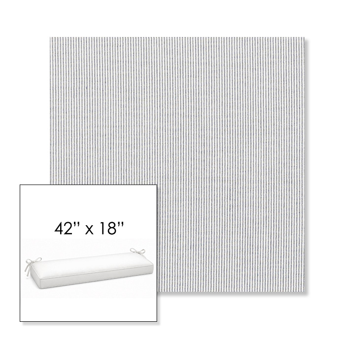 42" outdoor bench cushion designed for a simple, ready-to-order fit. Features a boxed construction with piping, fabric ties, and zipper opening. Made in 700+ Sunbrella® fabrics for long-lasting outdoor performance.