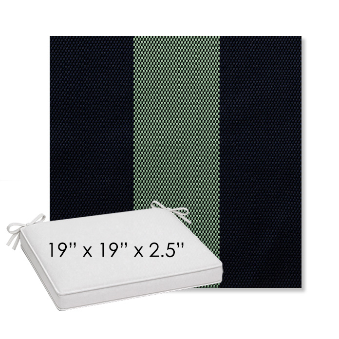 19" x 19" x 2.5" Thick outdoor dining chair seat cushion designed for a simple, ready-to-order fit. Features a boxed construction with piping, fabric ties, and zipper opening. Made in 700+ Sunbrella® fabrics for long-lasting outdoor performance.