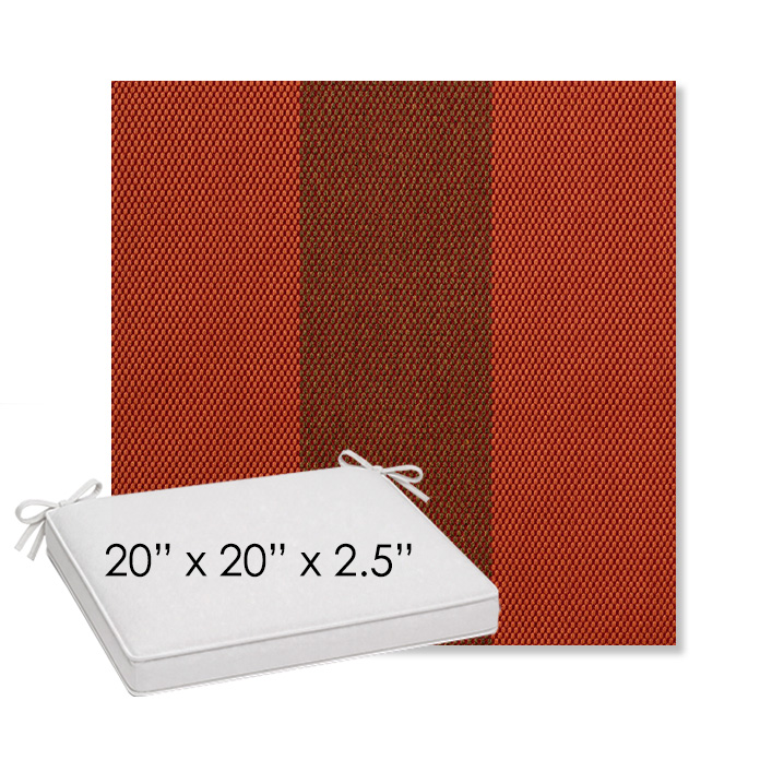 20" x 20" x 2.5" Thick outdoor dining chair seat cushion designed for a simple, ready-to-order fit. Features a boxed construction with piping, fabric ties, and zipper opening. Made in 700+ Sunbrella® fabrics for long-lasting outdoor performance.