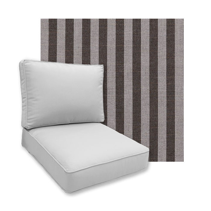 Why settle for off the shelf patio cushions when Cascadia Outdoor Cushions can manufacture the exact size you are looking for.The sizes avalable for this replacement cushion range from 24" to 26" Wide in 1/2" increments. This size range works well for most deep seating outdoor patio furniture styles. If you are looking for patio chair replacement cushions that are smaller or larger, no worries, we can mke them. Just send an email inquiry and let us know the size you are looking for. The patio furniture replacement cushions offered on Cascadia Outdoor Cushions are not all that we can make. If you have outdoor furniture from Brown Jordan, Woodard, Winston, OW LEE, Telescope Northcape, Ebel, Lloyd Flanders, Tropitone, Castelle, Bernhardt, Sunset West, Hanamint, Gensun, Meadowcraft, or other fine outdoor furniture brands, let us know. We can order the perfect replacement cushions for any manufacturer.