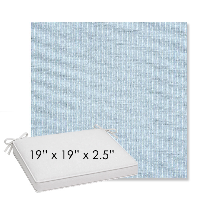 19" x 19" x 2.5" Thick outdoor dining chair seat cushion designed for a simple, ready-to-order fit. Features a boxed construction with piping, fabric ties, and zipper opening. Made in 700+ Sunbrella® fabrics for long-lasting outdoor performance.